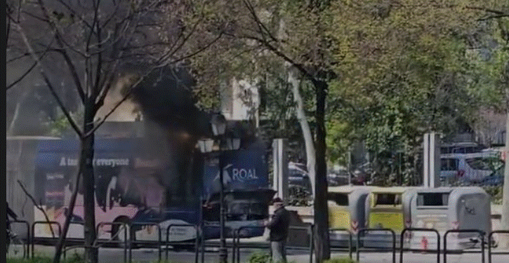 Një autobus i transportit urban në kryeqytet është përfshirë nga flakët para Ministrisë së Jashtme.