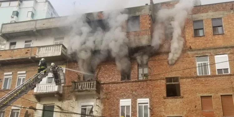 Një apartament në katin e nëntë të një pallati është përfshirë nga flakët pasditen e kësaj të diele pranë Gjykatës në Tiranë.