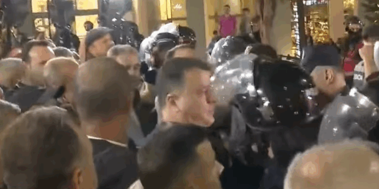 Një punonjës policie është dërguar me urgjencë te Trauma pas plagëve të marra gjatë përplasjes me protestuesit.