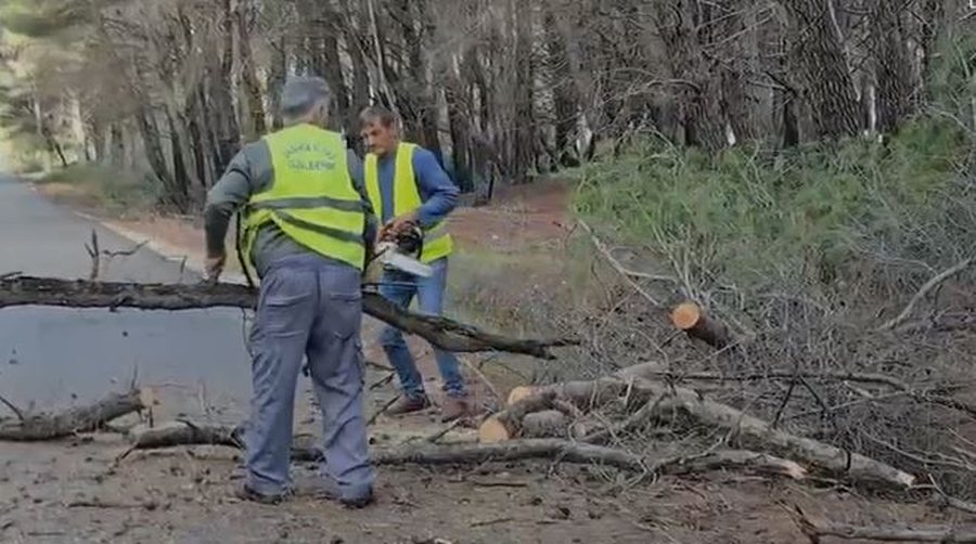 Një tjetër rast ka ndodhur mëngjesin e kësaj të shtune, ku një pishë ka rënë në segmentin rrugor që lidh Vlorën me Nartën dhe Zvërnecin.