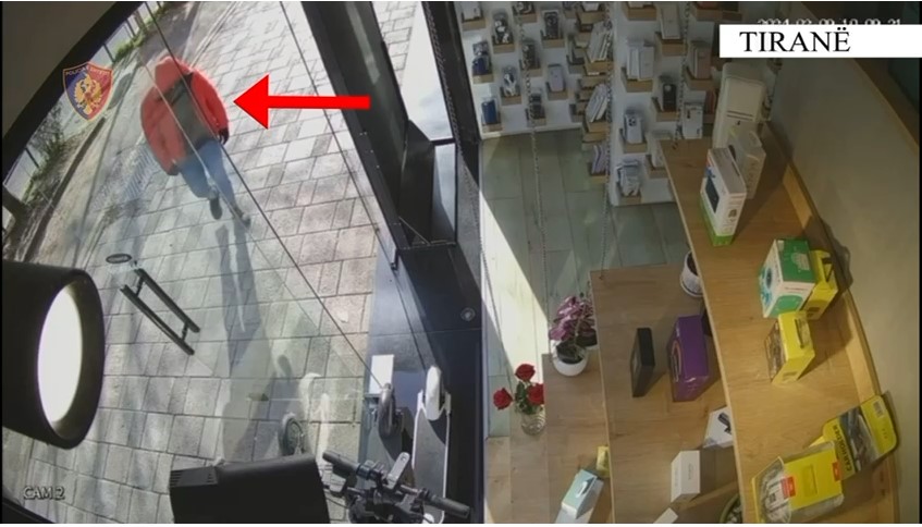 Në video, ai shihet duke kërcënuar me një armë pistoletë punonjësin e dyqanit e më pas duke marrë disa aparate celularë. Ndërsa grabitja tjetër në argjendari ngjan si skenë filmash. Kamerat kanë kapur një sharrë dhe një shkop që kap disa bizhuteri.