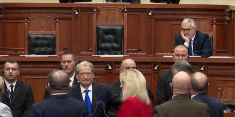 Sali Berisha përdori fjalor të papërshtatshëm në Kuvend ndërsa po fliste për çështjen e Belinda Ballukut. Niko Peleshi i ndërpreu fjalën, ndërsa deputetët e opozitës bllokuan foltoren.