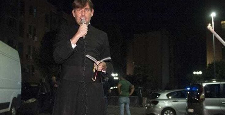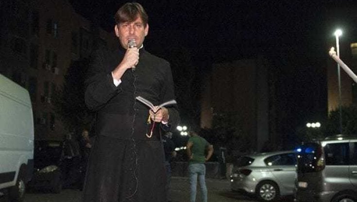 Prifti u sulmua në Tor Bella Monaca , gjatë një vigjiljeje me pishtarë për vendosjen e ligjit në rrugën dell’Archeologia, një nga sheshet më të mëdha të tregtisë së drogës në Itali.