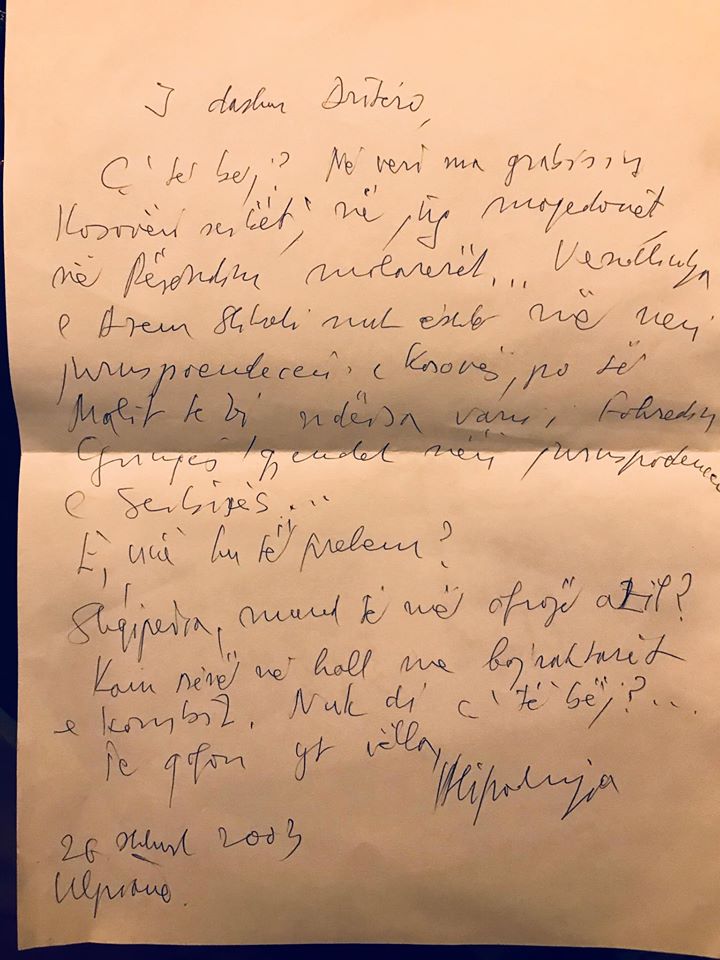 – I dashur Dritëro , Ç’të bëj? Në veri ma grabisin Kosovën sërbët, në jug maqedonët, në Perêndim malazezët…