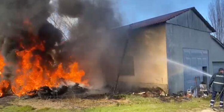Zjarri dyshohet të ketë nisur nga djegia e disa gomave në ambientin e jashtëm të magazinës, duke krijuar rrezik për përhapjen e flakëve drejt objektit.