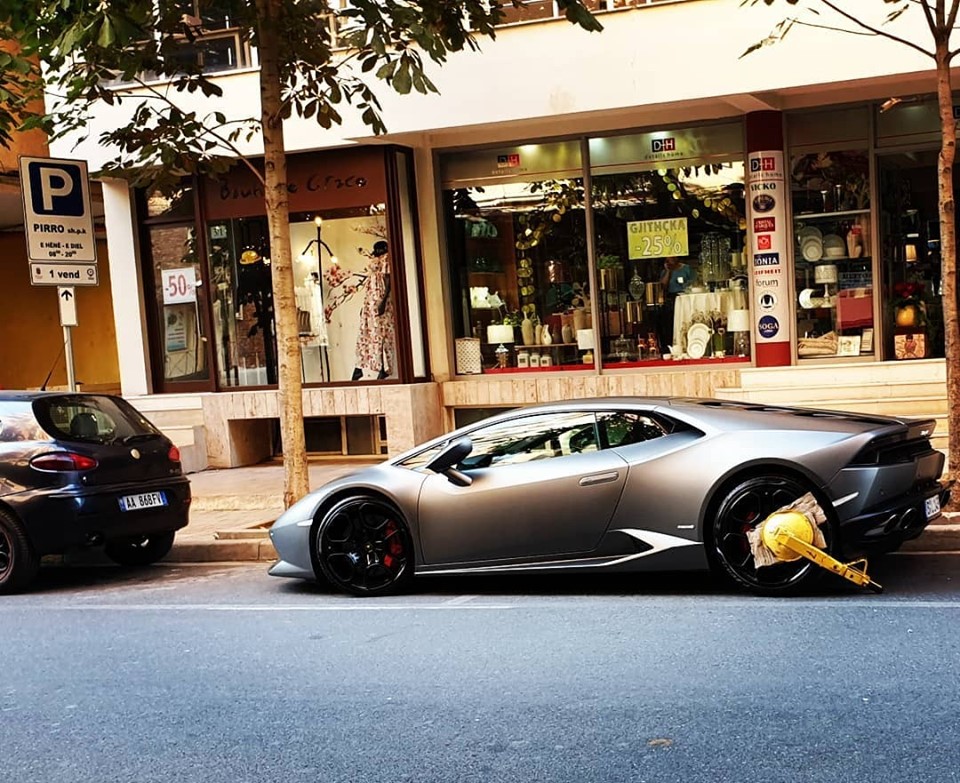 Një automjet Lamborghini që kushton mijëra euro është gjobitur për parkim të gabuar duke i dhënë një mësim të mirë pronarit të tij. Fondet që mblidhen nga masat administrative , Bashkia e Tiranës i përdor për të shtuar gjelbërimin në kryeqytet në dobi të gjithë komunitetit.