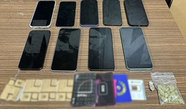 U sekuestruan gjithsej nëntë telefona celularë, dhjetë karta SIM dhe një kartë memorieje, ndërsa u gjetën edhe gjashtë gramë kanabis i papërpunuar, i shpërndarë në pako të improvizuara.