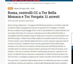 Ndërkaq, arrestime u kryen edhe për tregti të drogës në Romë. Kështu, në pranga kanë përfunduar një 17-vjeçar italian nga Roma dhe 2 shqiptarë të moshave 20 dhe 21 vjeçe. Të arrestuarit dyshohet se shpërndanin lëndën narkotike në sheshet e Romës.