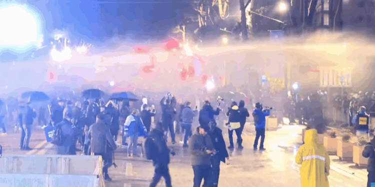 Është tensionuar protesta e opozitës para Kryeministrisë. Policia po përdor në mënyrë të vazhdueshme makinat me ujë për të shpërndarë turmën.
