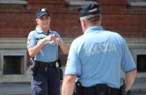 Një police rrugore ka tërhequr vëmendjen e turistëve e kalimtarëve në Zagreb të Kroacisë me pamjen e saj.
