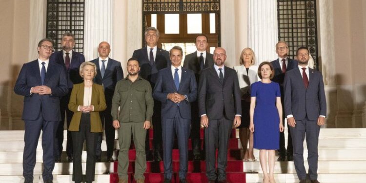 Liderët e shteteve ballkanike janë mbledhur në kryeqytetin grek të hënën së bashku me zyrtarë të lartë të Bashkimit Evropian për të diskutuar të ardhmen evropiane të rajonit, ku ndër të tjerë, pjesëmarrës ishte edhe Volodymyr Zelenskyy, presidenti i Ukrainës.