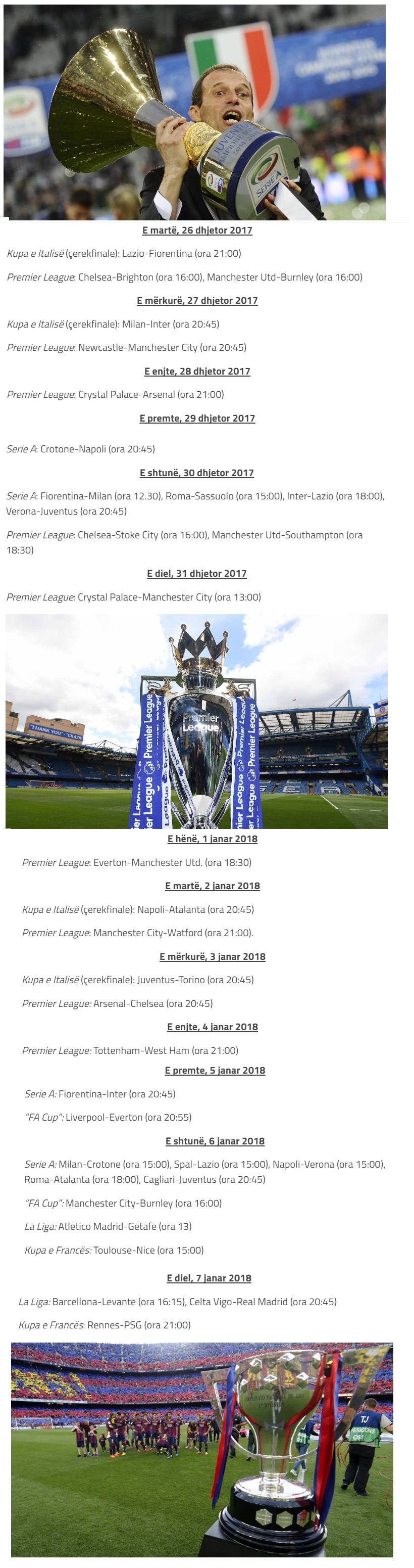 Ja cili është kalendari i ndeshjeve për festat e fund-vitit, me ndeshje kryesore.