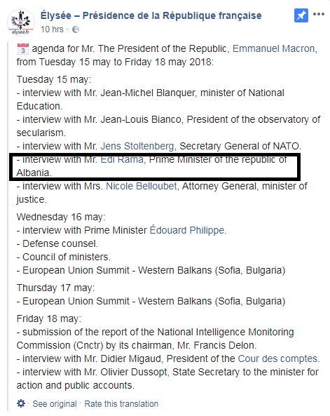 Konfirmohet zyrtarisht takimi mes Kryeministrit Edi Rama dhe presidentit francez Emanuel Macron.
