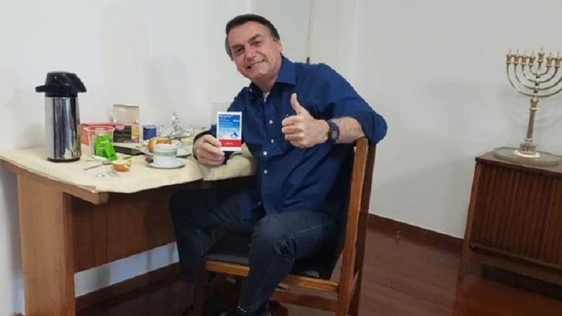 Bolsonaro postoi gjithashtu një foto të vetes me një kuti të ilaçit anti-malarie hidroksilklorine, megjithëse shkencërisht nuk është provuar ende se ky ilaç është efektiv ndaj koronavirusit