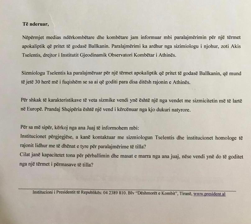 Presidenti Ilir Meta, ka vendosur të bëjë edhe rolin e sizmiologut duke parashikuar një tërmet të fortë.