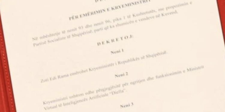 Mes tyre Begaj ka mandatuar Ramën edhe për ministren virtuale të inteligjencës artificiale Diella.