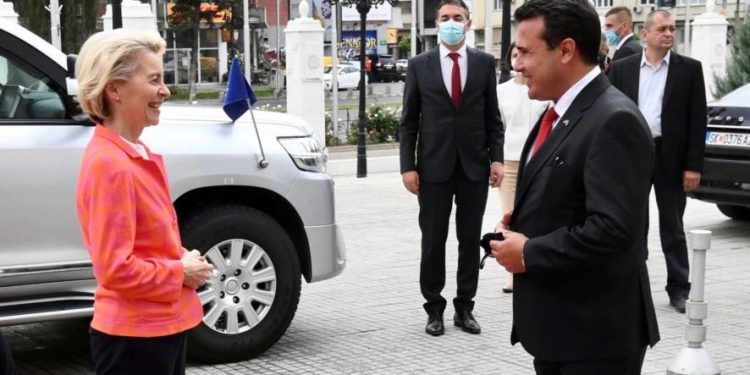 Presidentja e Komisionit Evropian, Ursula von der Leyen në Shkup theksoi përkushtimin e Brukselit për fillimin e bisedimeve për zgjerim me Maqedoninë e Veriut dhe Shqipërinë së bashku, ndërsa në një konferencë shtypi nuk u përgjigj nëse do të kishte një shkëputje në hapjen e bisedimeve për të dy vendet e Ballkanit perëndimor nëse Bullgaria do të vazhdonte bllokimin e Maqedonisë së Veriut drejt rrugës së integrimit evropian për shkak të problemeve me historinë dhe identitetin e fqinjit më të vogël.