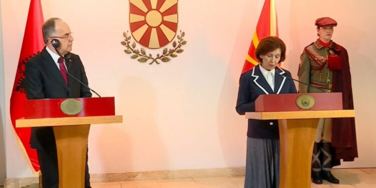 Në një kohë pasigurish politike dhe sfidash në sigurinë evropiane, bashkëpunimi mes vendeve është thelbësor për forcimin e stabilitetit dhe paqes. Kështu u shpreh presidentja e Maqedonisë së Veriut Siljanovska-Davkova gjatë konferencës së përbashkët për shtyp me presidentin shqiptar Bajram Begaj.