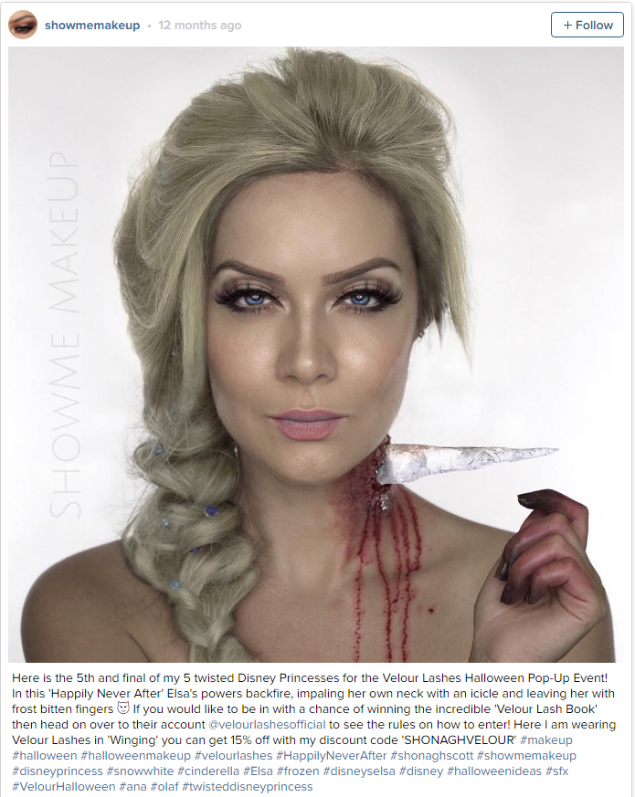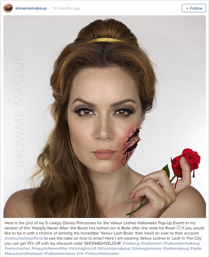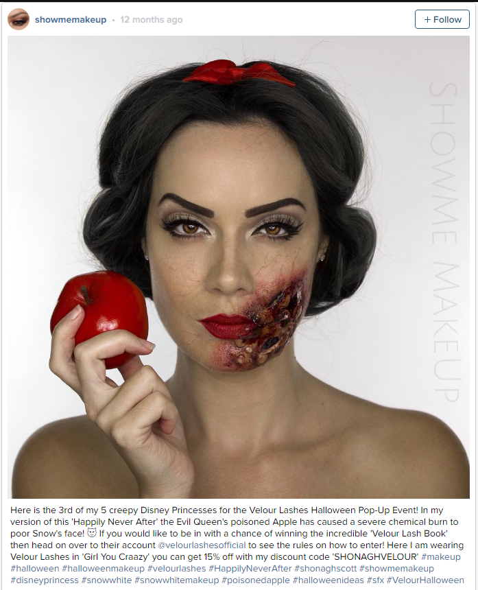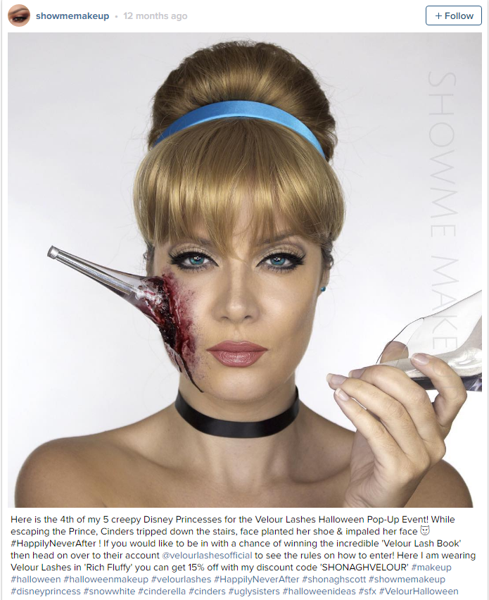 Për festën e Halloween këtë vit, grimerja Shonagh Scott ka rikrijuar princeshat më të njohura nga përrallat, duke i bërë viktima të ngjarjeve tragjike të inspiruar nga përrallat origjinale.