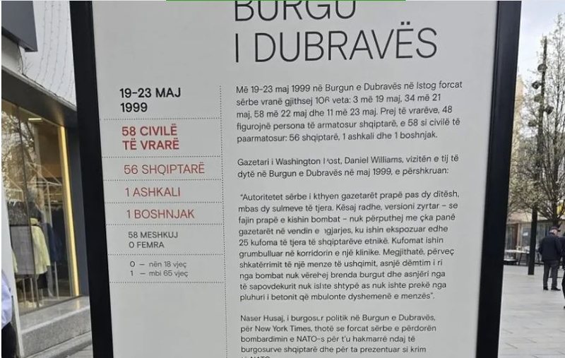 Ai ka deklaruar se në sheshin e Prishtinës nuk do të lejohet, siç u shpreh, “përdhosja e dinjitetit të qytetarëve dhe fyerja e kujtesës kolektive të popullit”, duke shtuar se ekspozita paraqet një version të shtrembëruar të Masakrës së Dubravës, shkruan KosovaPress.
