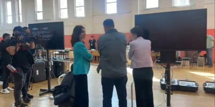 Drejtuesja politike për qarkun e Tiranës, Elisa Spiropali ka mbërritur në Vorë, ku edhe pritet që të dalë rezultati i votimit elektronik.