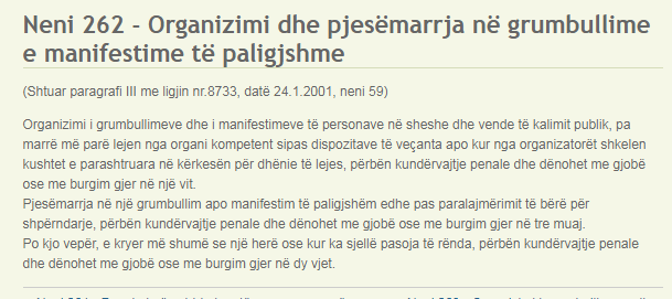 Deputetët e proceduar, ndër të cilëve ka edhe emra të njohur opozitarë si Flamur Noka, Kejdi Mehmetaj, Oerd Bylykbashi, etj, në rast se hetohen dhe shpallen fajtorë për një vepër të tillë, sipas Kodit Penal mund të burgoseshin deri në një maksimum prej katër vjetësh.