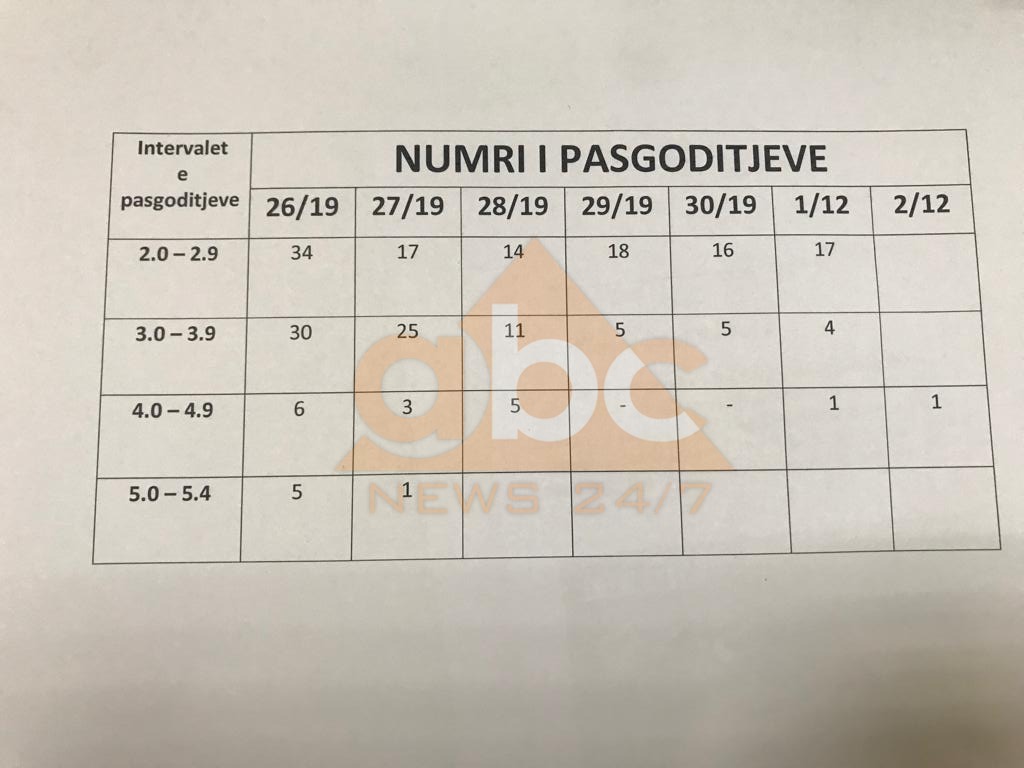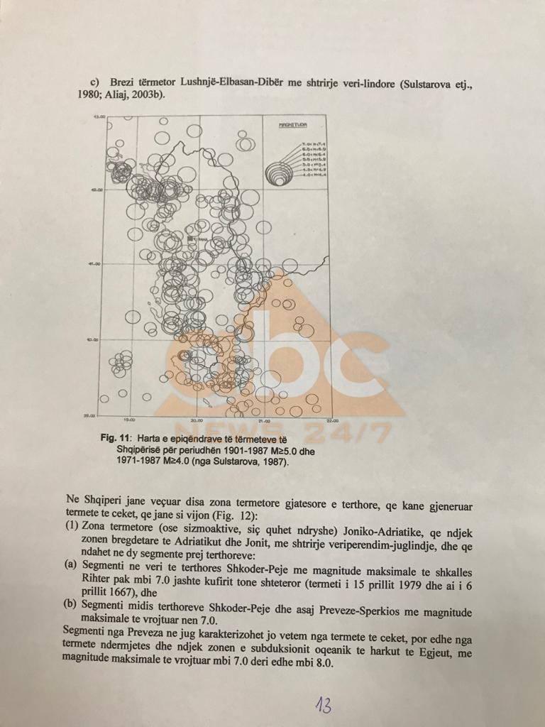 *Më poshtë dokumentet që paraqiti profesori; Të dhënat për pasgoditje, vatra e termetit, dhe aktiviteti sizmik ne zonën bregdetare.