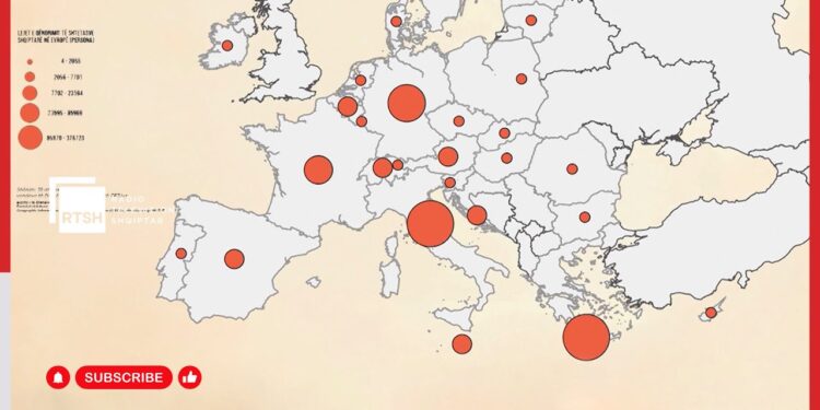 Sipas të dhënave më të fundit të publikuara nga INSTAT në raportin “Diaspora e Shqipërisë në shifra”, rreth 1.1 milionë persona të lindur në Shqipëri dhe afro 939 mijë shtetas shqiptarë jetojnë aktualisht në 31 vende evropiane, me përqendrimin më të madh në Itali, Greqi, Gjermani, Francë dhe Mbretërinë e Bashkuar