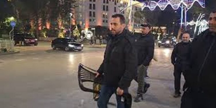 Tashmë, Adriatik Lapaj dhe mbështetësit e tij janë vendosur në të njëjtin vend si në protestën e 22 dhjetorit, te parku përballë hotel “Rogner”. Në foto ata duken duke u larguar me karriget në duar.