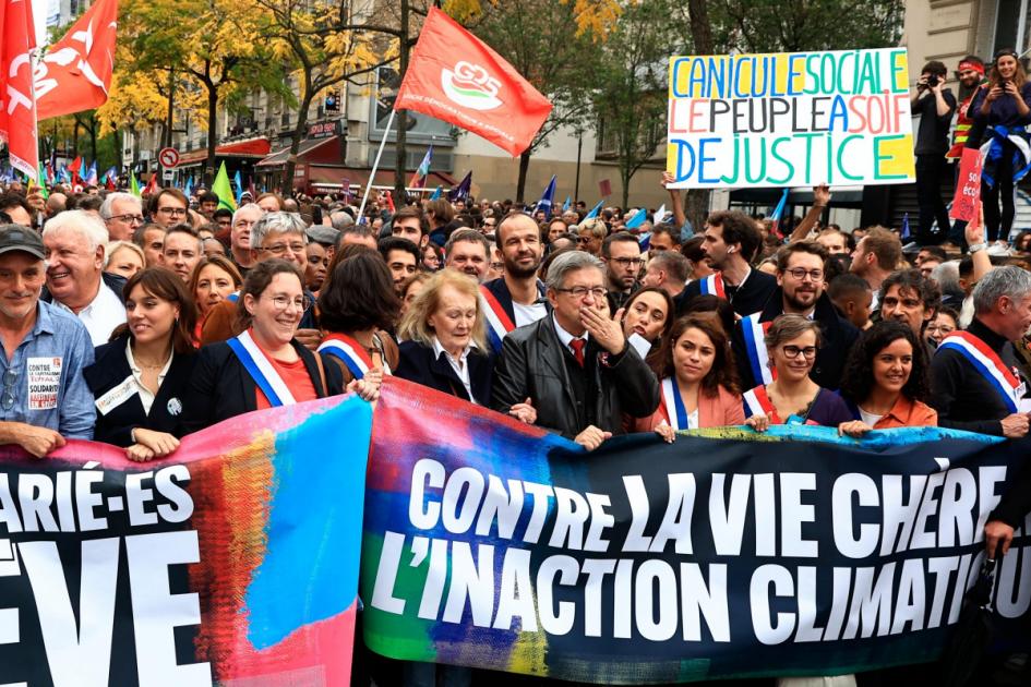Protestuesit mbanin në duar pankarta me slogane “Stop evazionit fiskal” dhe “Unë dua një rritje page 52% ashtu si CEO i TotalEnergies”. Udhëheqësi i partisë së majtë La France Insoumise (Franca e Papërkulur), Jean-Luc Melenchon, marshoi së bashku me fituesen e çmimit Nobel për Letërsinë e këtij viti, Annie Ernaux. Ai i bëri thirrje njerzve që të dalin në protestë të marten. Melenchon ndoqi hapat e katër sindikatave të cilat kanë bërë greva dhe protesta për rritjen e pagave.