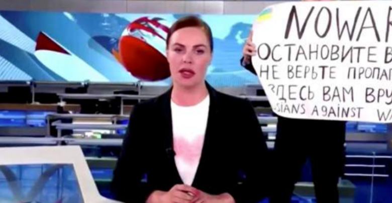 Protestuesja u identifikua si Marina Ovsyannikova, një punonjëse e Channel One, sipas OVD-Info dhe kreut të grupit të të drejtave të njeriut Agora.