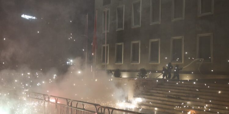 Të paktën 25 protestues janë shoqëruar në polici për hedhjen e molotovëve drejt Kryeministrisë dhe Kuvendit gjatë protestës kombëtare të opozitës.