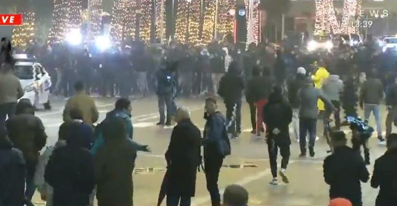 Protestuesit kanë sulmuar një makinë të policisë, e cila ishte e parkuar në bulevardin përpara kryeministrisë.