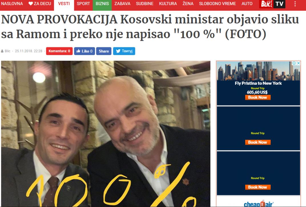 Portali tjetër Blic.rs, e ka quajtur provokim publikimin e ministrit Shala me Edi Ramën.