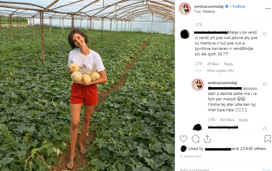 Teksa fotografia ka marrë mijëra pëlqime, një fanse ka vendosur që t’i bëjë një koment modeles, duke i kërkuar llogari që u largua që e vogël nga Tuzi.