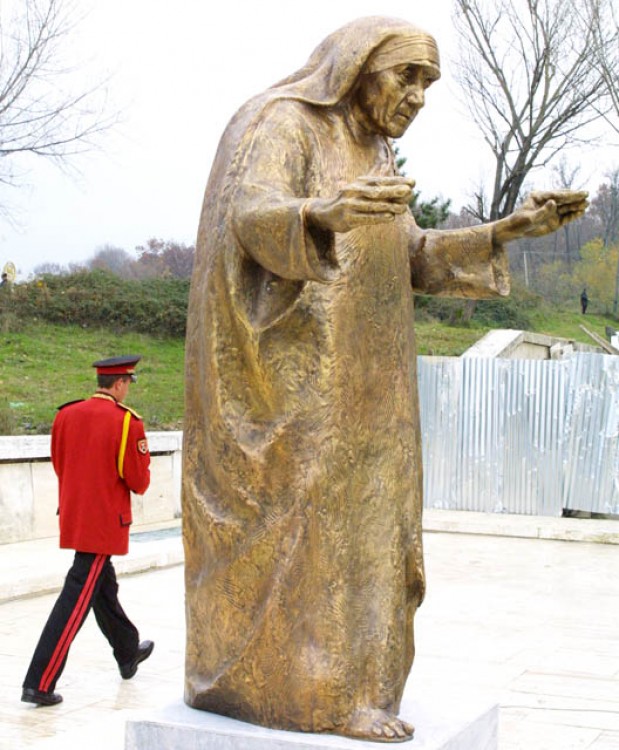 Nënë Tereza ka edhe ajo një histori të bukur me monumentin e saj punuar nga Dhamo, dikurvendosur te korpusi. Një skulpturë tjetër e Mulliqit, autorit të mirënjohur kosovar, u bë dhe u vendos në Rinas, por pastaj kjo u zëvendësua me punën e Dhamos, e cila dëmtohej një e dy dhe ishte kthyer në vend plehrash. Kurse Nënë Tereza tjetër është zhvendosur në afërsi të kufirit shqiptaro-maqedon!!! Sot, e kësaj dite, në sheshin “Nënë Tereza” që përkujton shenjtoren ka vetëm një pllakë, që më shumë mund ta marrësh si shenjë orientimi sesa si pllakë.