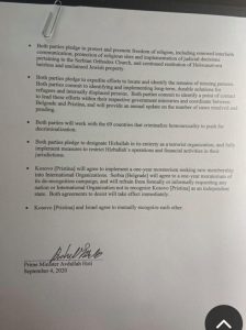 Kosova dhe Serbia kanë nënshkruar sot më 4 shtator marrëveshjen historike në Uashington. Marrëveshja u arrit pas bisedimeve në Shtëpinë e Bardhë, për herë të parë në një nivel të lartë të udhëhequr nga Shtetet e Bashkuara të Amerikës. Në këtë marrëveshje thuhet se Kosova dhe Serbia janë pajtuar për normalizimin ekonomik mes dy vendeve.