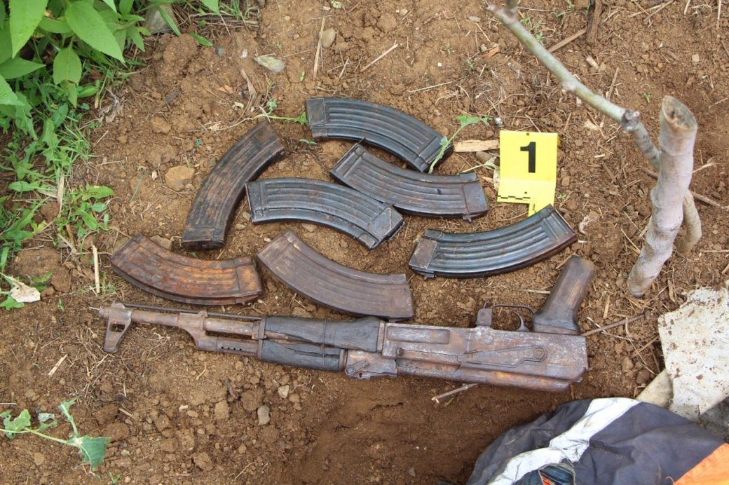 Pas një kontrolli të bërë në banesën e këtij shtetasi dhe ambienteve përreth saj, u gjet e groposur një armë automatike Model 56, 7 krëhëra, ku 6 prej tyre ishin bosh ndërsa njëri kishte 25 fishekë brenda, të cilat u sekuestruan në cilësinë e provës materiale.
