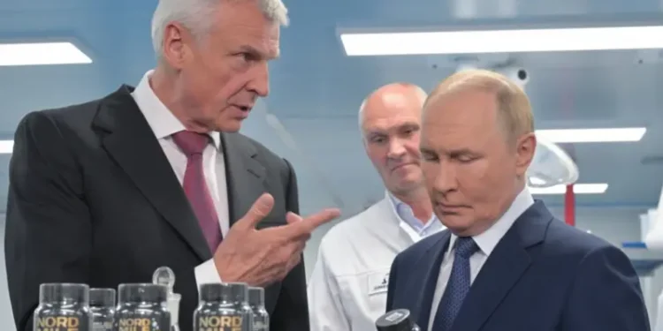 Televizioni shtetëror u sigurua që kamerat ta filmonin ndërsa shëtiste në ndërtesat e prodhimit lokal, duke kontrolluar çdo pjesë. Putin ka marrë pjesë në një tur për një linjë të re suplementesh dietike ruse që janë prezantuar me krenari si pjesë e ambicies së Moskës për “pavarësi të plotë” nga importet perëndimore.