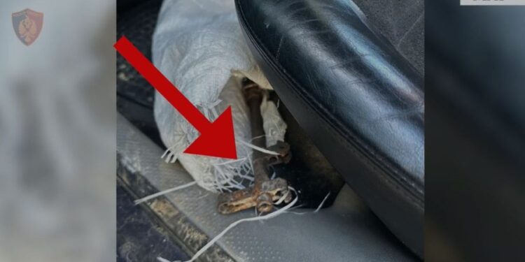 Gjatë kontrollit fizik të automjetit, shërbimet e Policisë gjetën të fshehur dhe sekuestruan në cilësinë e provës materiale 1 armë zjarri pushkë.