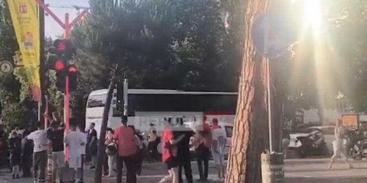 Autobusi i skuadrës serbe të futbollit ka mbërritur në “Arenën Kombëtare”. Rrugës, pranë Bulevardit “Dëshmorët e Kombit” në Tiranë, një tifoz i vogël në moshë e ka goditur nga pas autobusin me një shishe uji.