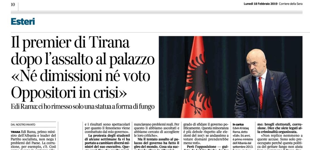 Pjesë nga intervista e Ramës për gazetën italiane