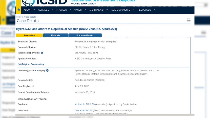 Tre ditë më parë, gjykata me seli në Uashington, zhvilloi seancën e parë gjyqësore përmes një konference telefonike me përfaqësuesit e dy palëve të përfshira në konflikt, avokaturës të shtetit shqiptare dhe kompanisë italiane Hydro s.r.l.