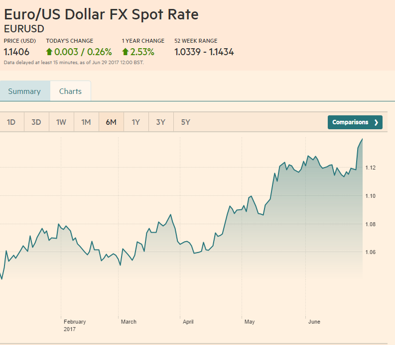 Prej dy ditësh, ndikuar nga forcimi i monedhës së përbashkët përkundrejt dollarit në tregjet ndërkombëtare, euro ka nisur të forcohet edhe në vend. Euro sot është këmbyer në bursë me 1.14 USD, duke kapur sërish nivele të larta këmbimit.
