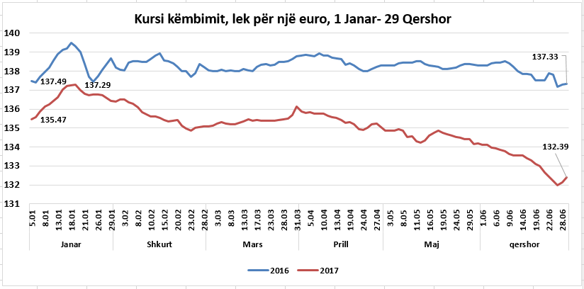 Verën e shkuar monedha e përbashkët thuajse shkoi në barazim me dollarin, ndërkohë që në Shqipëri këmbehej në nivelin e 137 lekëve.