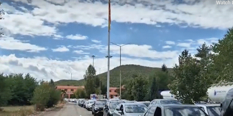 Siç shihet në këto pamje, dhjetëra automjete kanë krijuar radhë në të dyja kahet, duke shtuar kohën e pritjes për udhëtarët.