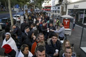 Në Londër, Tokio, Moskë, Singapor, Sidnej dhe Dubai u regjistruan radhë të gjata nëpër dyqanet Apple që në orët e para të mëngjesit. Disa prej tyre kishin zënë radhën që në orën 16:00 të një dite më parë dhe kishin marrë batanije me vete për të kaluar natën përpara dyqanit. /l.m