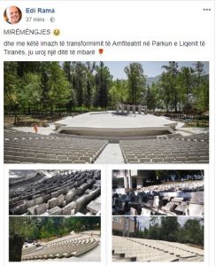 ‘MIRËMËNGJES dhe me këtë imazh të transformimit të Amfiteatrit në Parkun e Liqenit të Tiranës, ju uroj një ditë të mbarë’– shkruan Kryeministri./a.ç