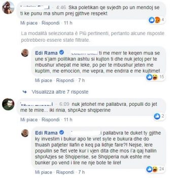 Kryeministri Edi Rama sa herë që i jepet mundësia replikon me qytetarët në rrjetet sociale, madje shpesh herë edhe përplaset me ta.