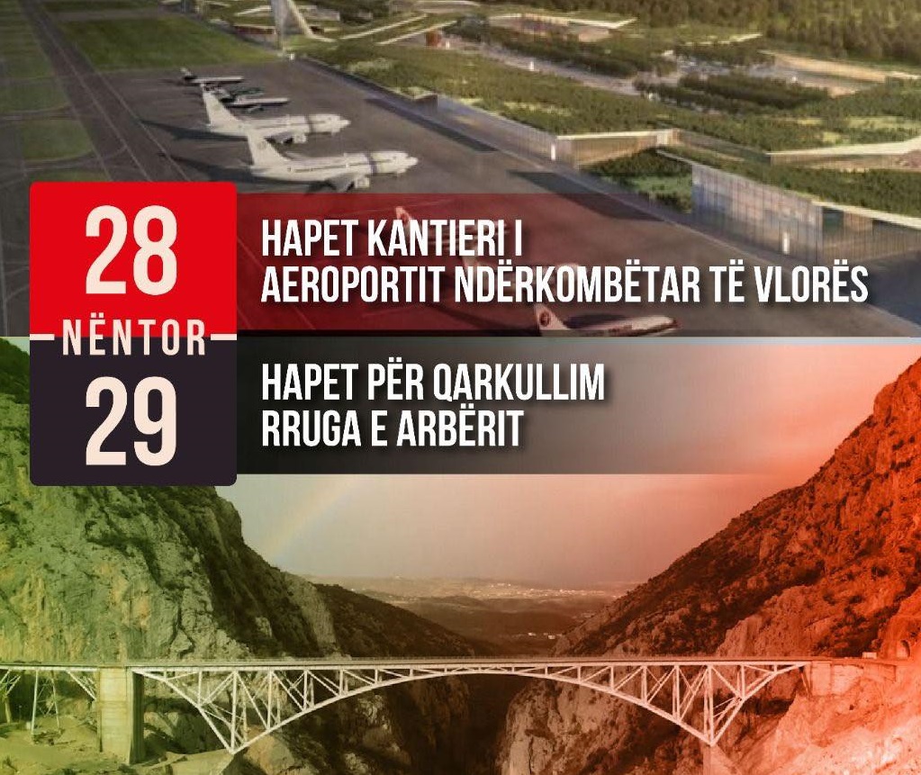 Ndërkohë në një postim në mediat sociale, Rama njofton se në 29 Nëntor përfundon dhe ndërtimi i Rrugës së Arbrit dhe do të jetë i aksesueshëm për të gjithë udhëtarët.